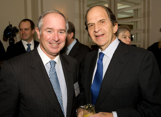 marchándose de los bancos de inversión ultra regulados, para organizarse en boutiques de asesoramiento, casas de Private Equity, o Hedge Funds con domicilios poco regulados (foto: Bruce Wasserstein y Stephen Schwartzman).