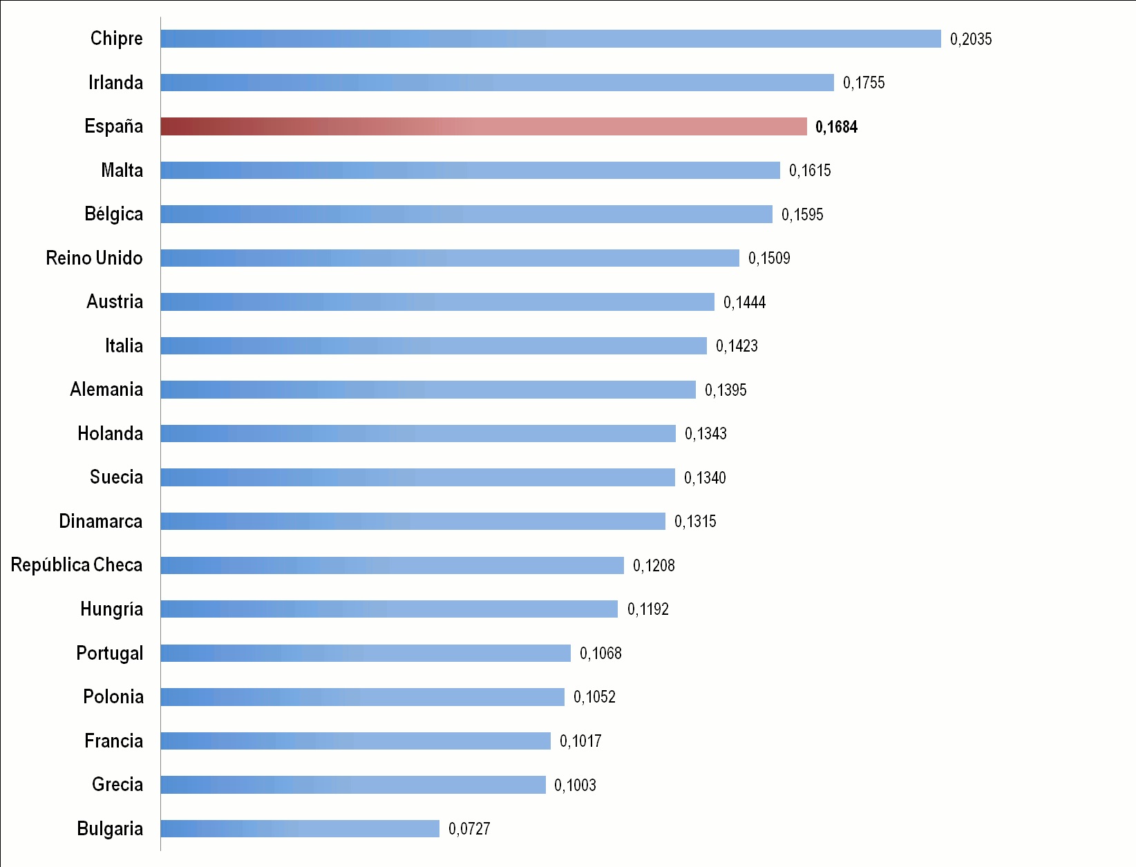también del PIB nacional, pero lo más curioso es que son destino de políticos en retirada de la vida pública, que mantienen el carnet de los partidos que les han recomendado para el puesto. Por lo tanto, la probabilidad de que se legisle en contra de los intereses de dichas empresas, es baja o nula. Uno de los casos más divertidos es el llamado déficit tarifario. Las compañías eléctricas hacen unas inversiones y tienen unos costes de estructura. Para ello, cobran un precio por la electricidad. Hasta aquí todo bien. El caso es que España es uno de los países con la electricidad más cara para el público (gráfico barras azules horizontales), pese a que el gobierno, de los impuestos que pagamos y pagaremos, añade una partida para las eléctricas porque según dicen, no les llega con el precio que nos ofrecen. Es decir, no solamente pagamos la electricidad más cara de Europa, sino que además pagamos sobre coste vía impuestos. Qué grande!!